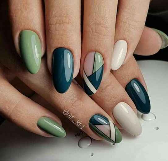Еще одна идея — создать абстрактную мозаику из геометрических узоров (самое большое фото — благодаря использованию светлых пастельных тонов ногти идеально подходят для ☀️ летней укладки) или использовать 3D-эффект (внизу, второе фото слева).