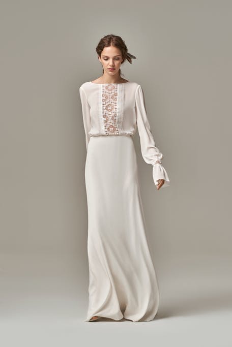 Поклонники герцогини во всем мире следят за ее свадебным стилем, а бренды все чаще выбирают фасон ее платья: изящная А-образная форма, модель из гладкого материала со шлейфом, с длинными рукавами и вырезом лодочкой.