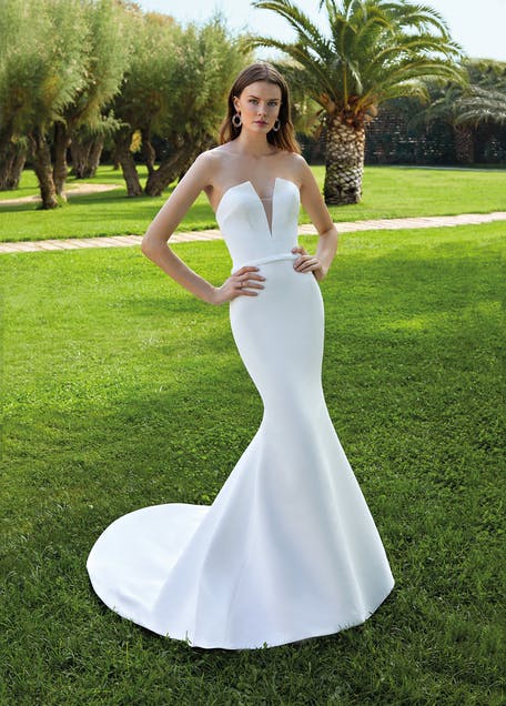 Такое свадебное платье « рыбка» или «русалка» в «экономичном» варианте, подчеркивающем силуэт, идеально подходит для менее обязательной свадьбы (например, на пляже или на природе), а если вы хотите придать ему большего класса, остановите свой выбор на ювелирных аксессуарах и элегантности. охватывает.