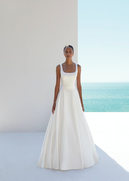 Могут ли скромные свадебные платья отличаться от белоснежного оттенка? Почему нет! Белые свадебные платья всегда будут самыми популярными, но простое свадебное платье также может иметь оттенки пудрово- розового, голубого, бежевого или экрю. Особенно рекомендую два последних варианта — бежево-нюдовые палитры сейчас доминируют в свадебных тенденциях и являются отличным отходом от классики.