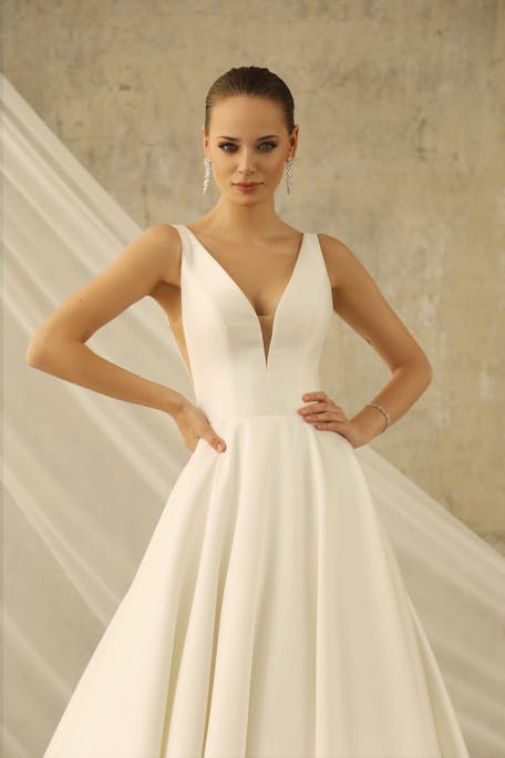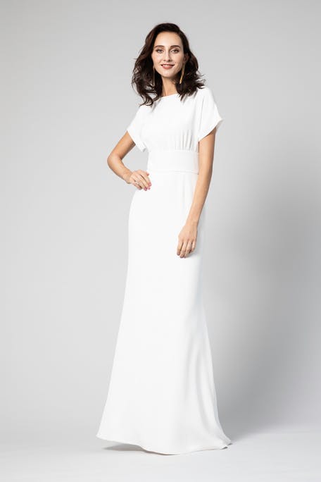 Скромные — не обязательно дешевые свадебные платья, но это правда, что если платье невесты сшито из минималистичного однослойного материала и лишено богатых украшений, оно, безусловно, будет стоить меньше, чем эффектные творения в королевском стиле, для которых были потрачены многие метры ткани, использовались тысячи страз, а время исполнения составляло сотни часов.