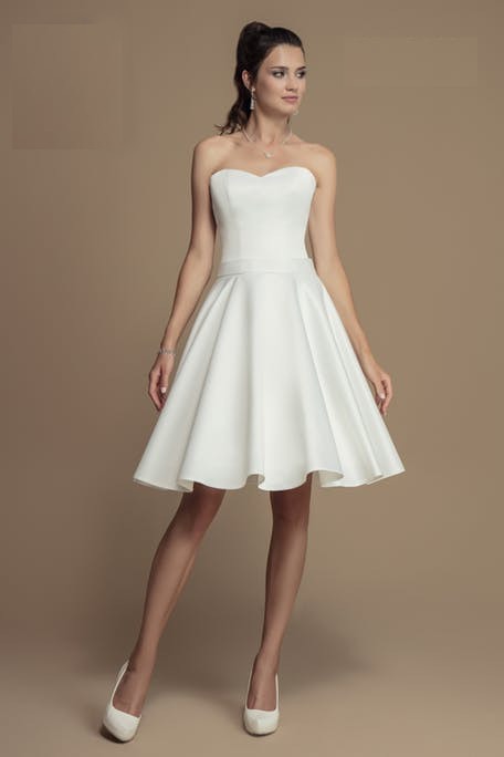 Поскольку стандартное свадебное платье ассоциируется с платьем длиной в пол, скромный вариант может напоминать короткое платье. Может быть, а может и нет. Однако, если ваше видение внешнего вида — комфортная элегантность, вы можете с успехом рассмотреть короткое свадебное платье миди или мини для своей свадьбы.