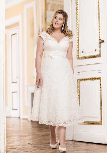 Свадебные платья средней длины часто имеют винтажную атмосферу. Особенно, если они половинчатые (так называемая чайная длина) и имеют расклешенный крой в стиле 50-х. Юбка мини-кроя, относящиеся к шестому десятилетию ХХ века, тоже в стиле ретро.